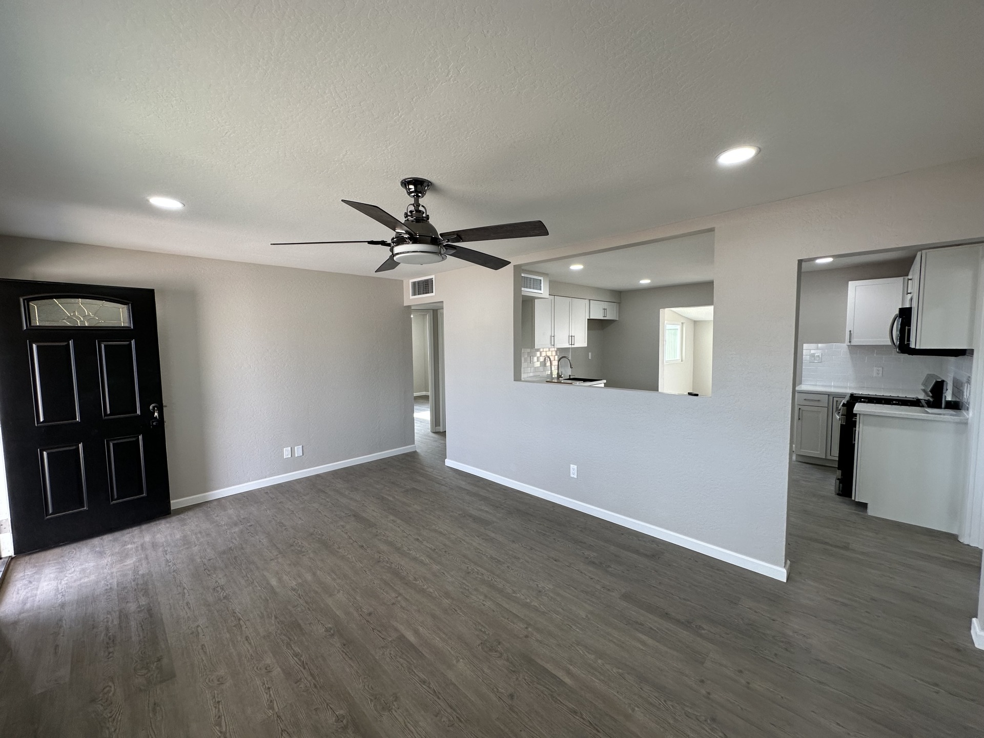 An open floor plan with a ton of natural light, this 3-bedroom, 2-bathroom haven, also features a bonus room. The all NEW kitchen is loaded with an abundance of white shaker cabinets, Samsung appliances, extra large sink, and vibrant quartz countertops. The bathrooms have been artfully renovated and showcase new vanities, mirrors, and an innovative touch Bluetooth-enabled speakers in the exhaust fans.