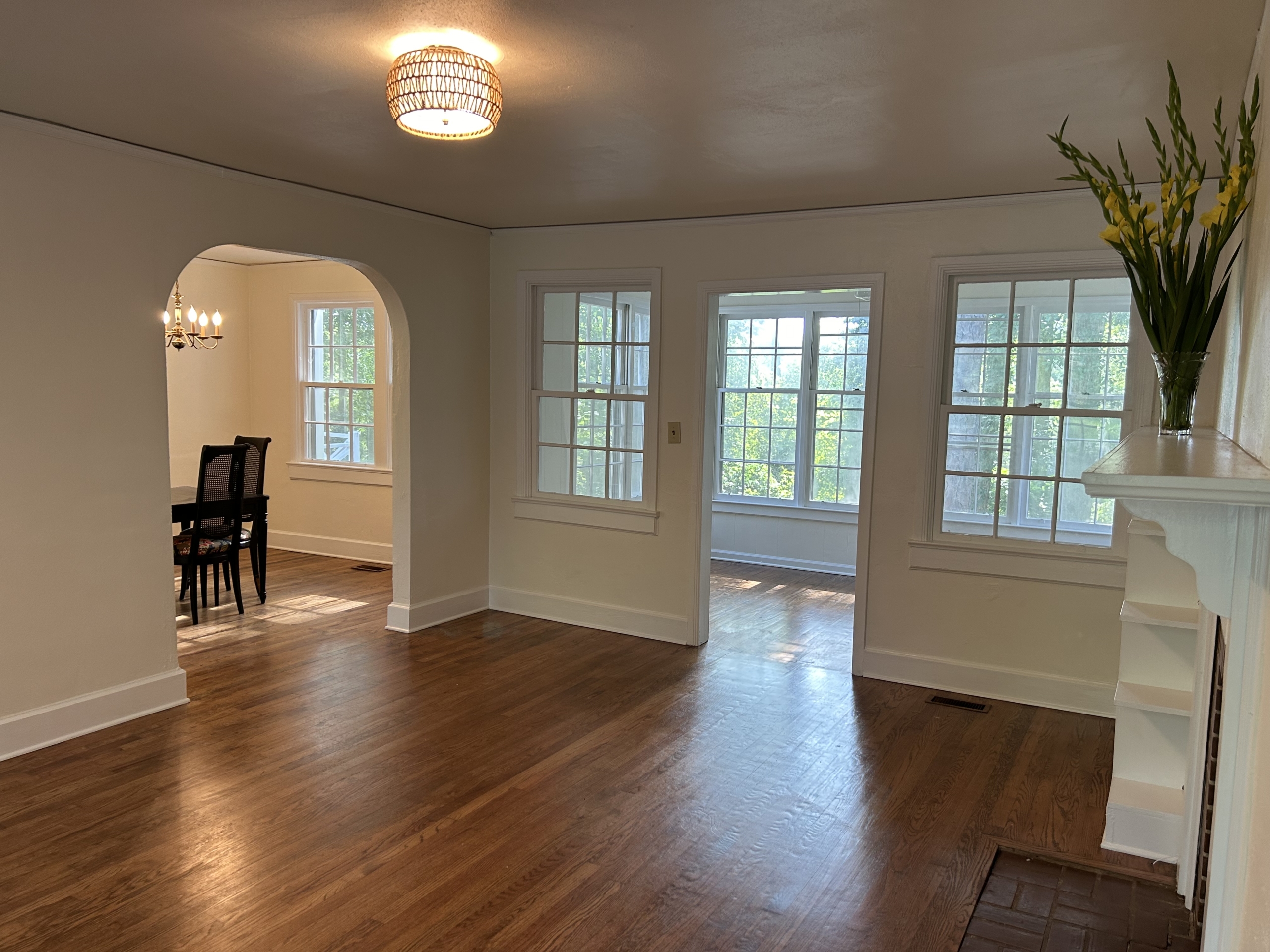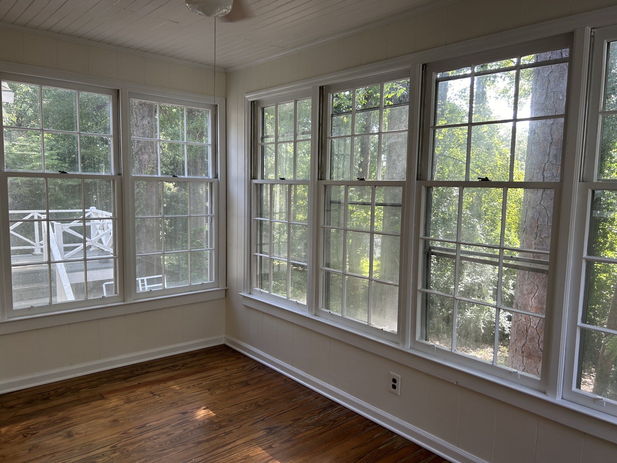 Sunroom overlooking large back yard