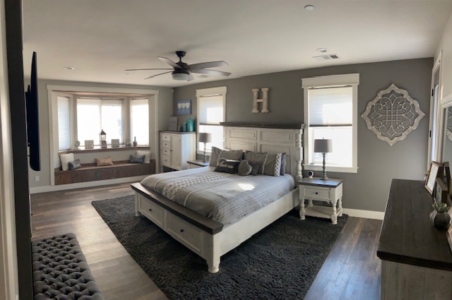 This gem also features a massive master bedroom with Patio access, beautiful fireplace, custom bay windows with elegant barn wood seating as well as a barn door.