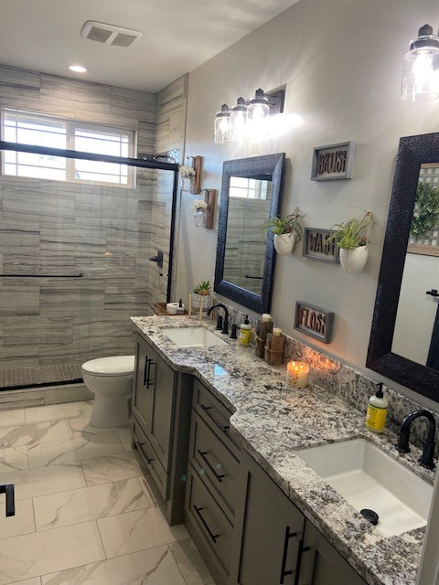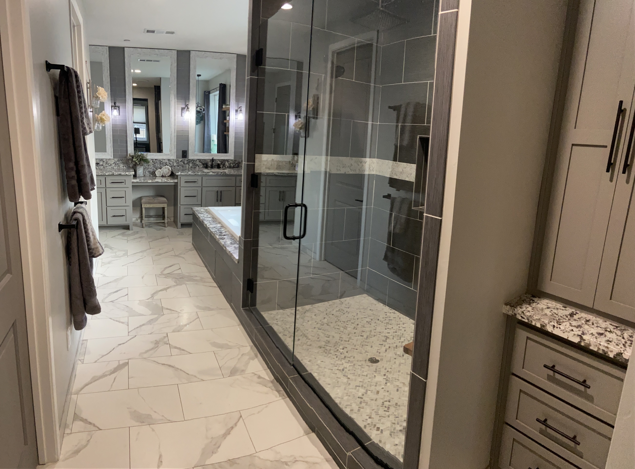 In the Master bedroom you will find two vanities separated by a sitting level makeup station, Jacuzzi tub, massive walk-in shower with dual shower heads including a 12 ceiling mounted rain head. You will also find giant his and hers walk in closets.