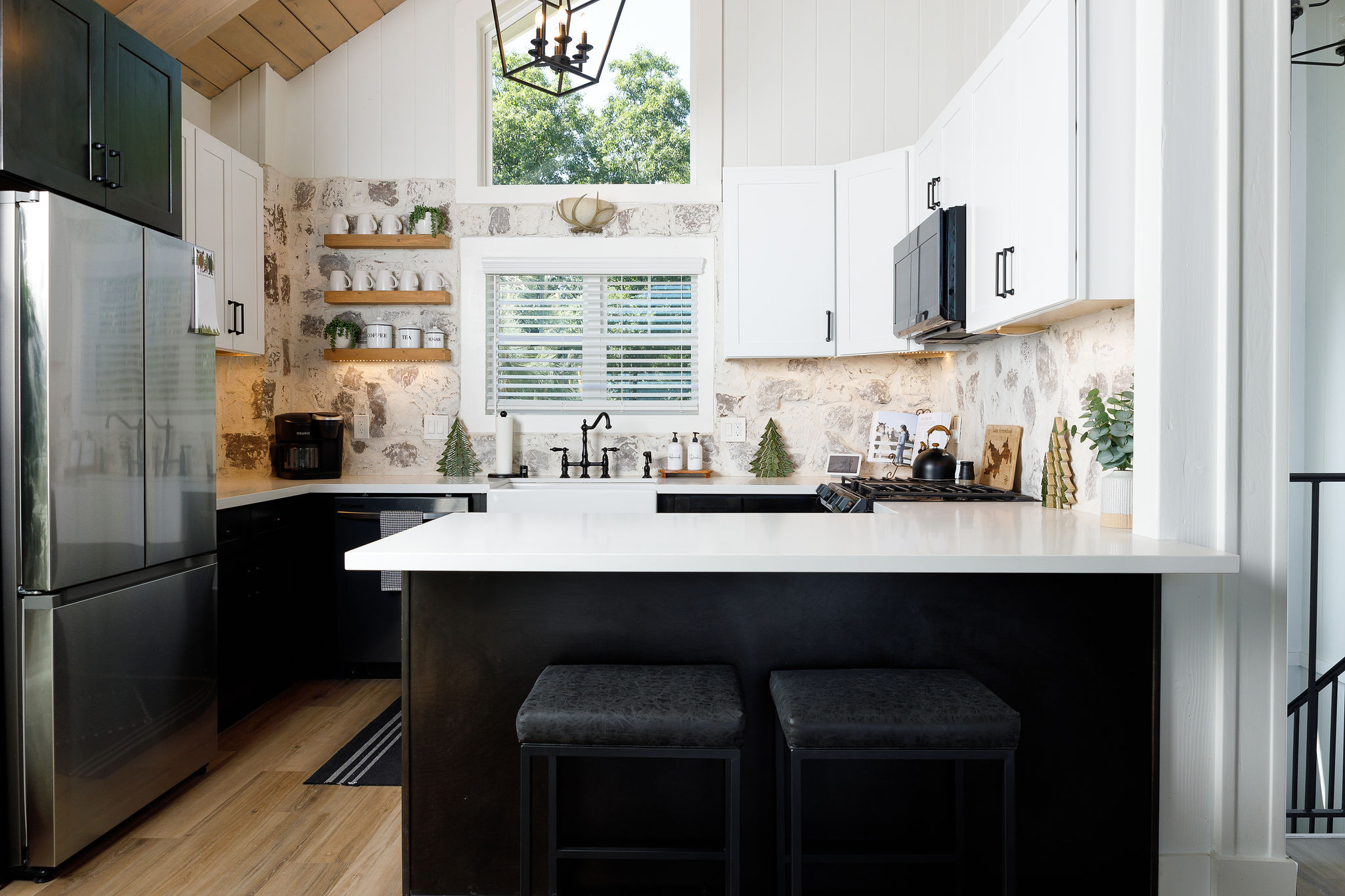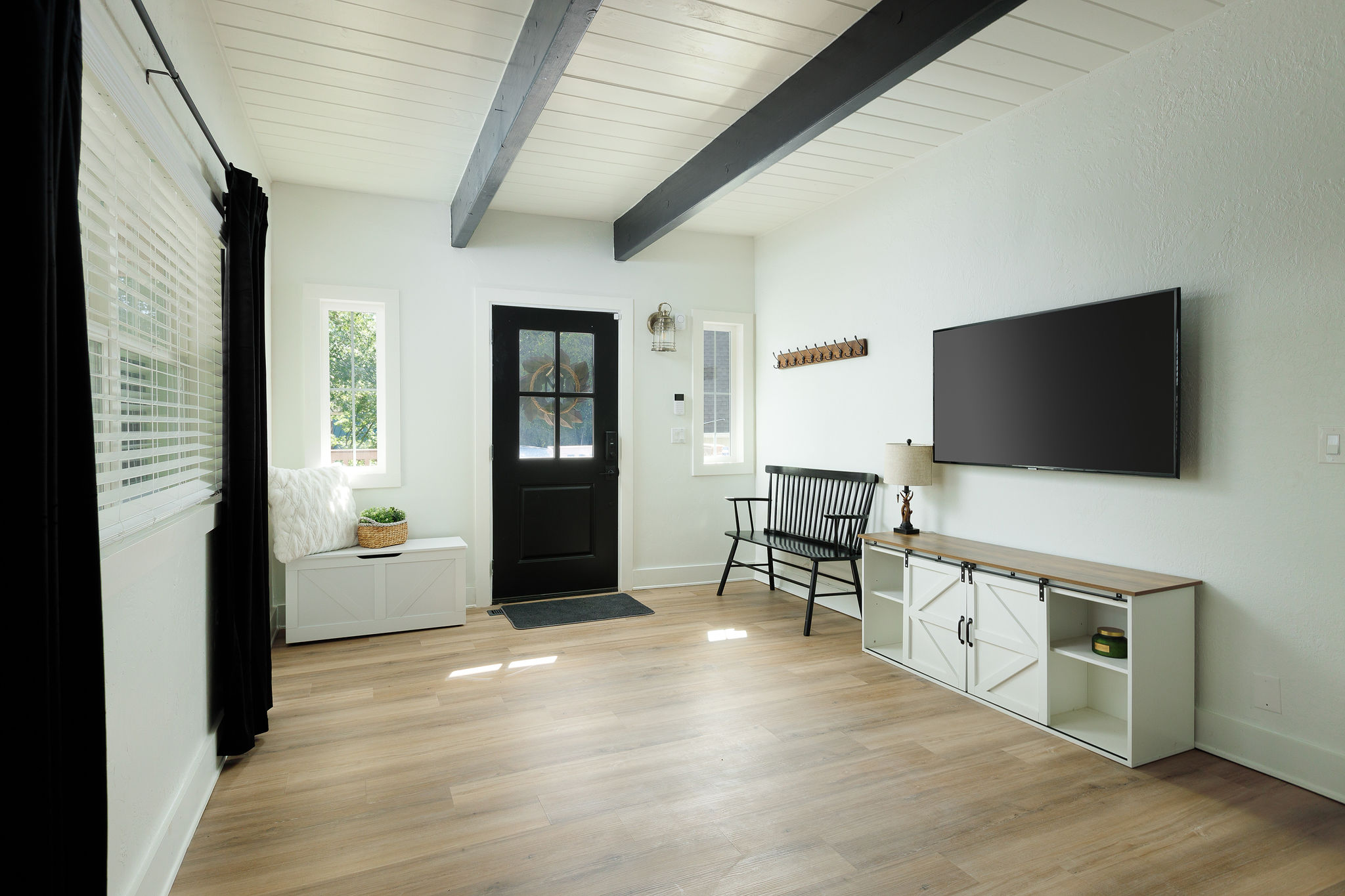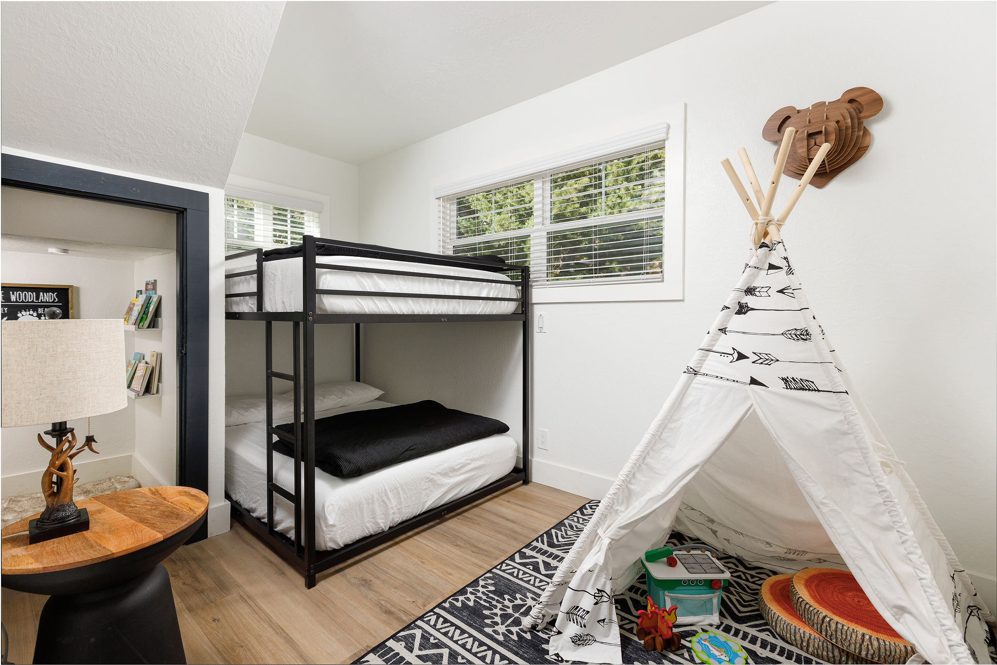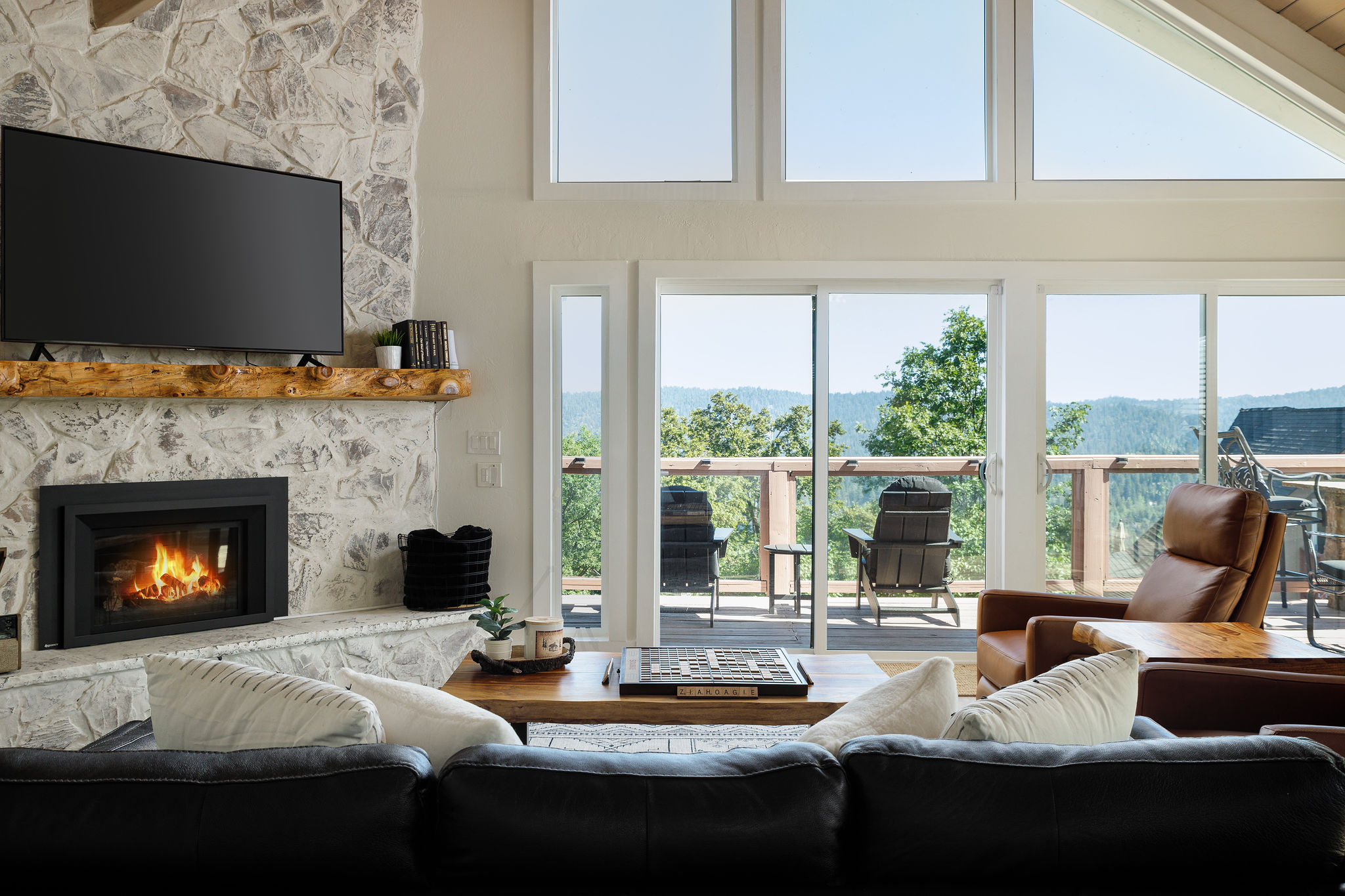The hearth of the home is the spacious 2nd floor common area featuring an open concept living and dining/kitchen space adorned with a beautiful stone gas fireplace and a generously-sized wrap-around deck that invites you to soak in the serene surroundings. With comfortable bedrooms, and spa-like bathrooms, every inch of this cabin has been designed with comfort and relaxation in mind.