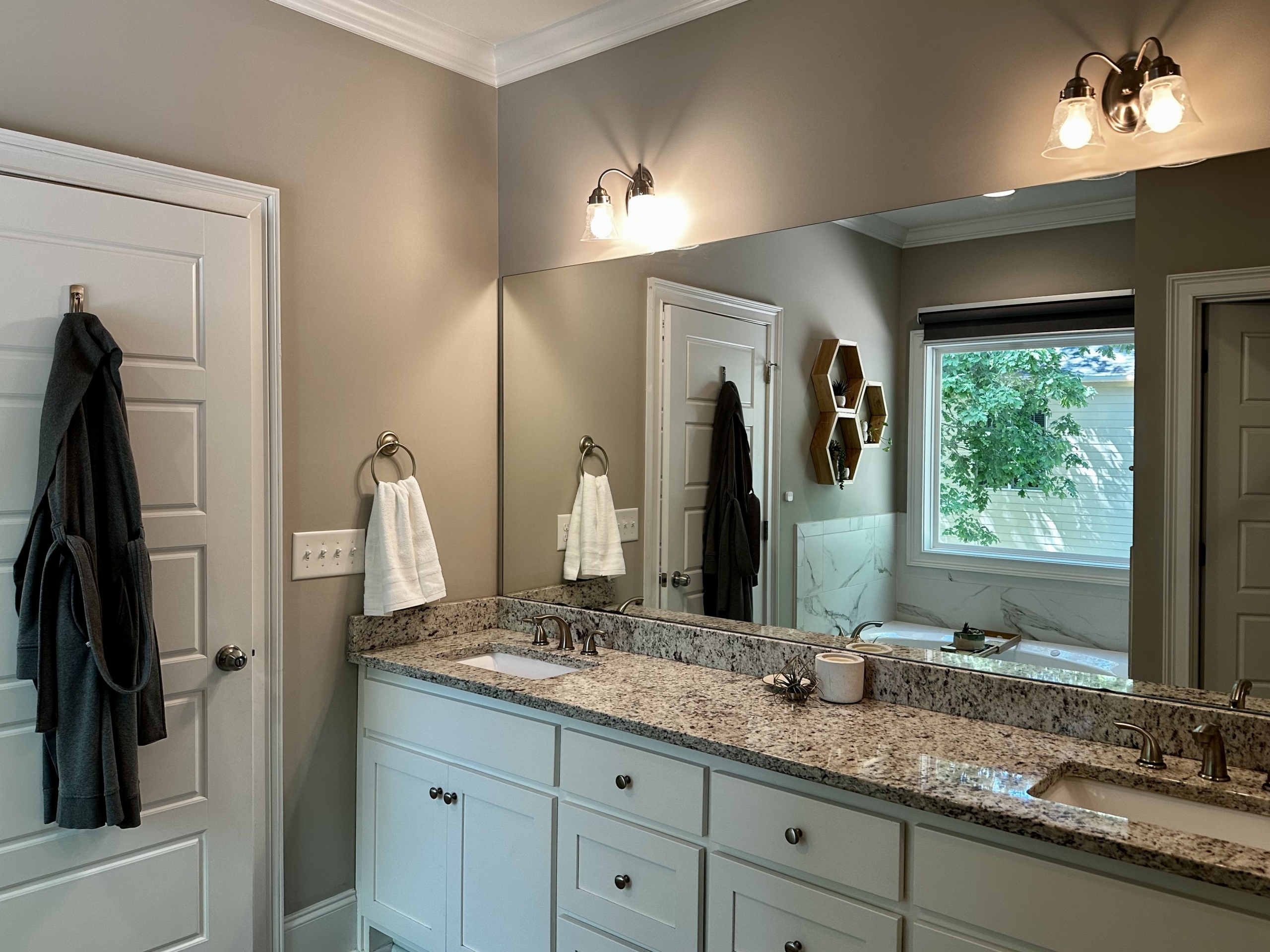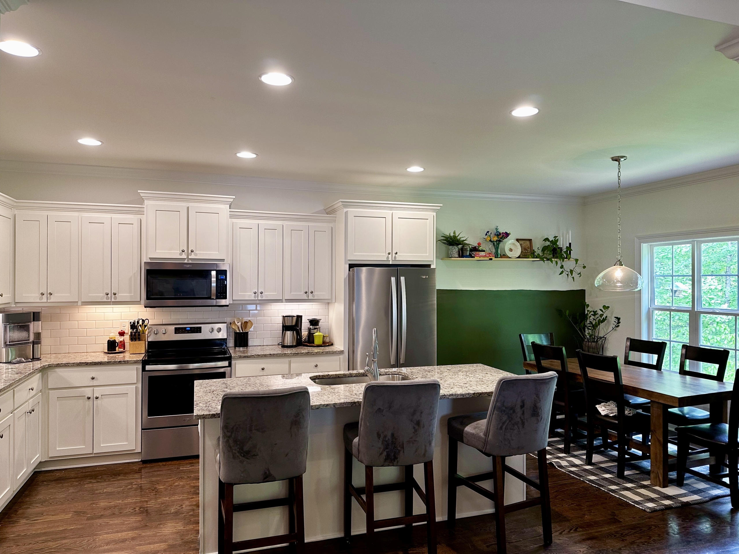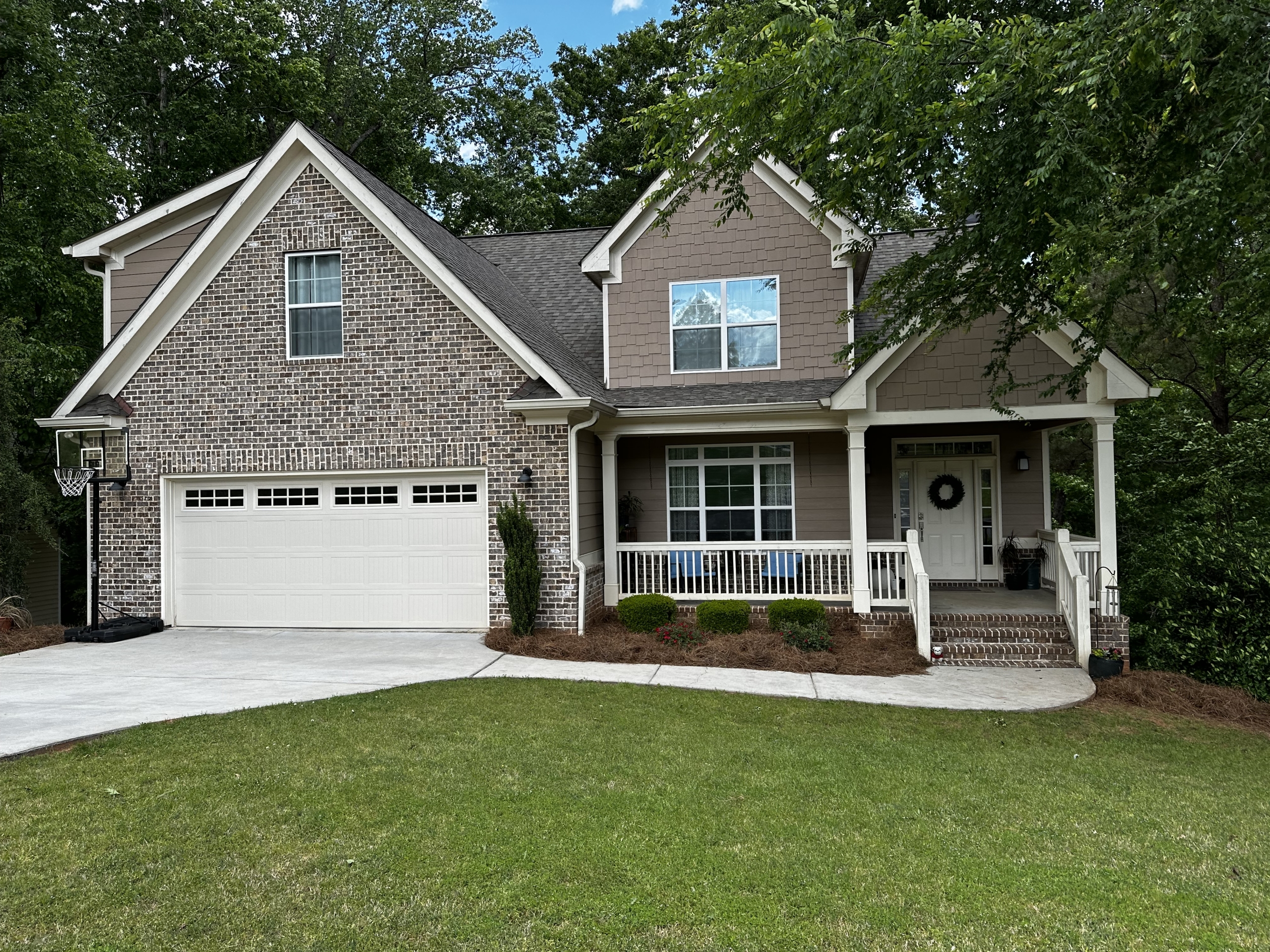 Spacious home in family-friendly Westgate Park, with a covered front porch and two stories of rear deck. Nestled at the quiet back of the neighborhood at the front of a cul-de-sac. Large owner’s suite on the main floor with walk-in closets, large en suite with jetted tub and separate tiled shower. Three bedrooms upstairs, including a very large bedroom over the garage with its own bathroom. Large, open concept living room and kitchen, with a breakfast bar and nook, as well as a dining room, all with hardwood floors. The partially finished basement includes LVP flooring throughout, open living area with high ceilings, a full bathroom, and two separate rooms that could treated as bedrooms, offices, a den, or play areas. Smart features like thermostats for dual zone climate control, smart lighting and ceiling fan in finished basement, and connected garage door. Electric vehicle charging outlet in garage. Granite in kitchen & all baths, hardi-plank siding w/brick accents, architectural shingles. Plenty of space for storage in unfinished parts of basement, plus attic. This wonderfully friendly neighborhood also has an optional pool membership. Pleasant pond near the front of the neighborhood, wide streets, beautiful mature trees throughout neighborhood and on lot. For inquiries call or text 317.670.8548 and ask for Hannah.