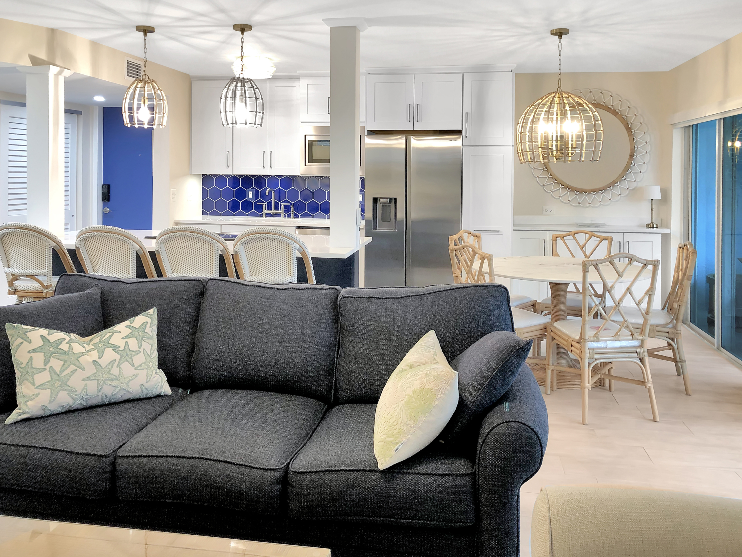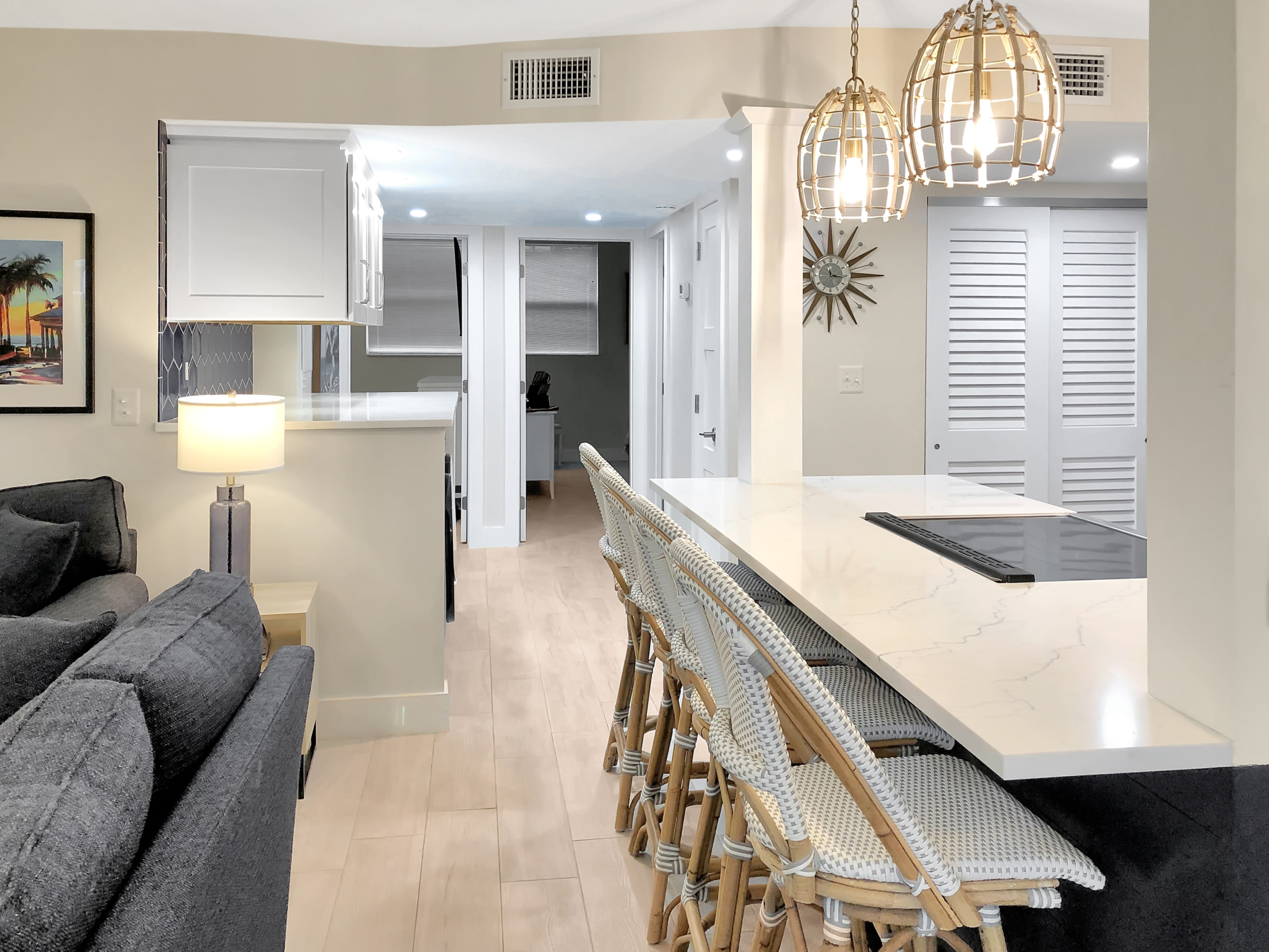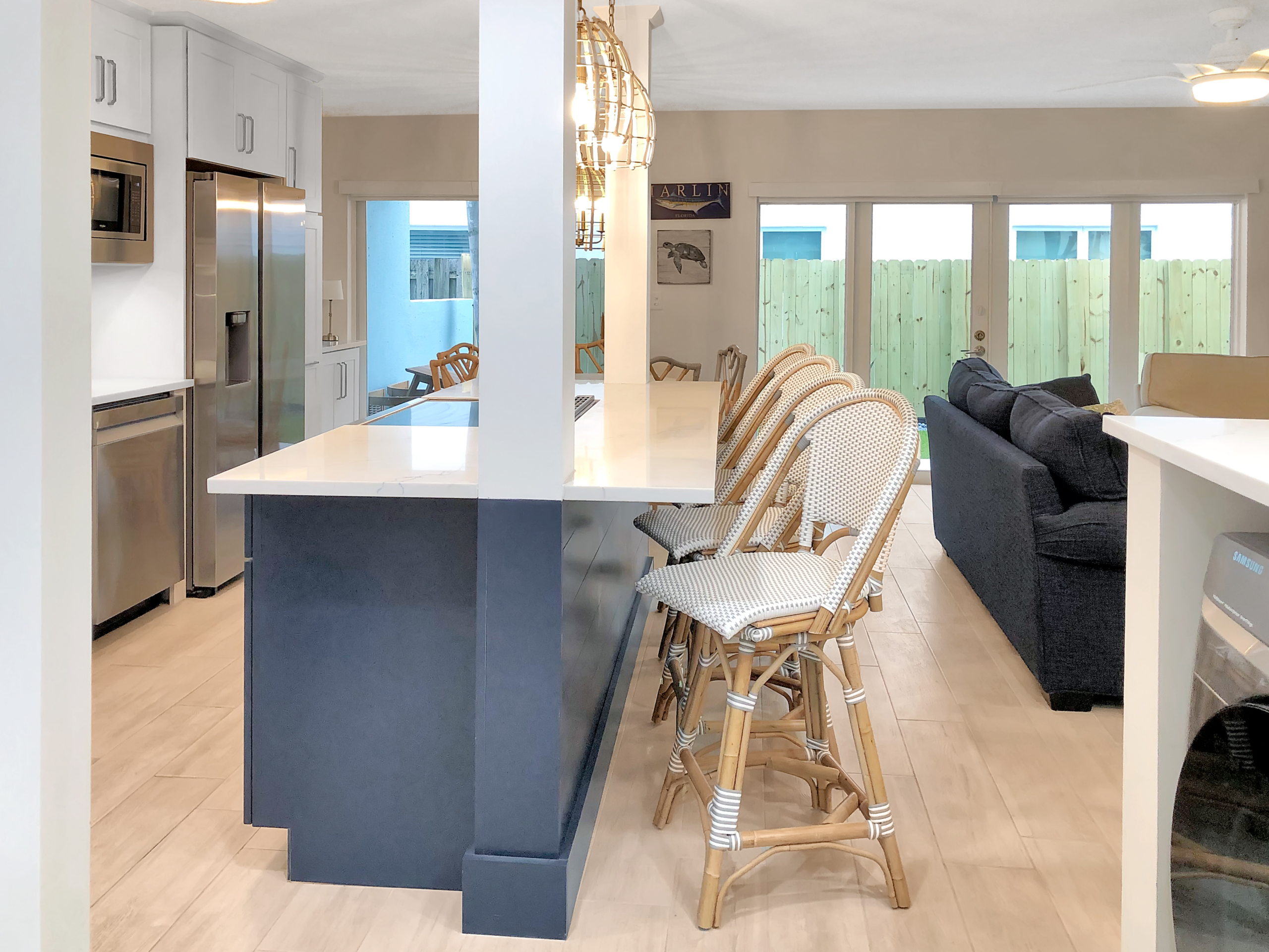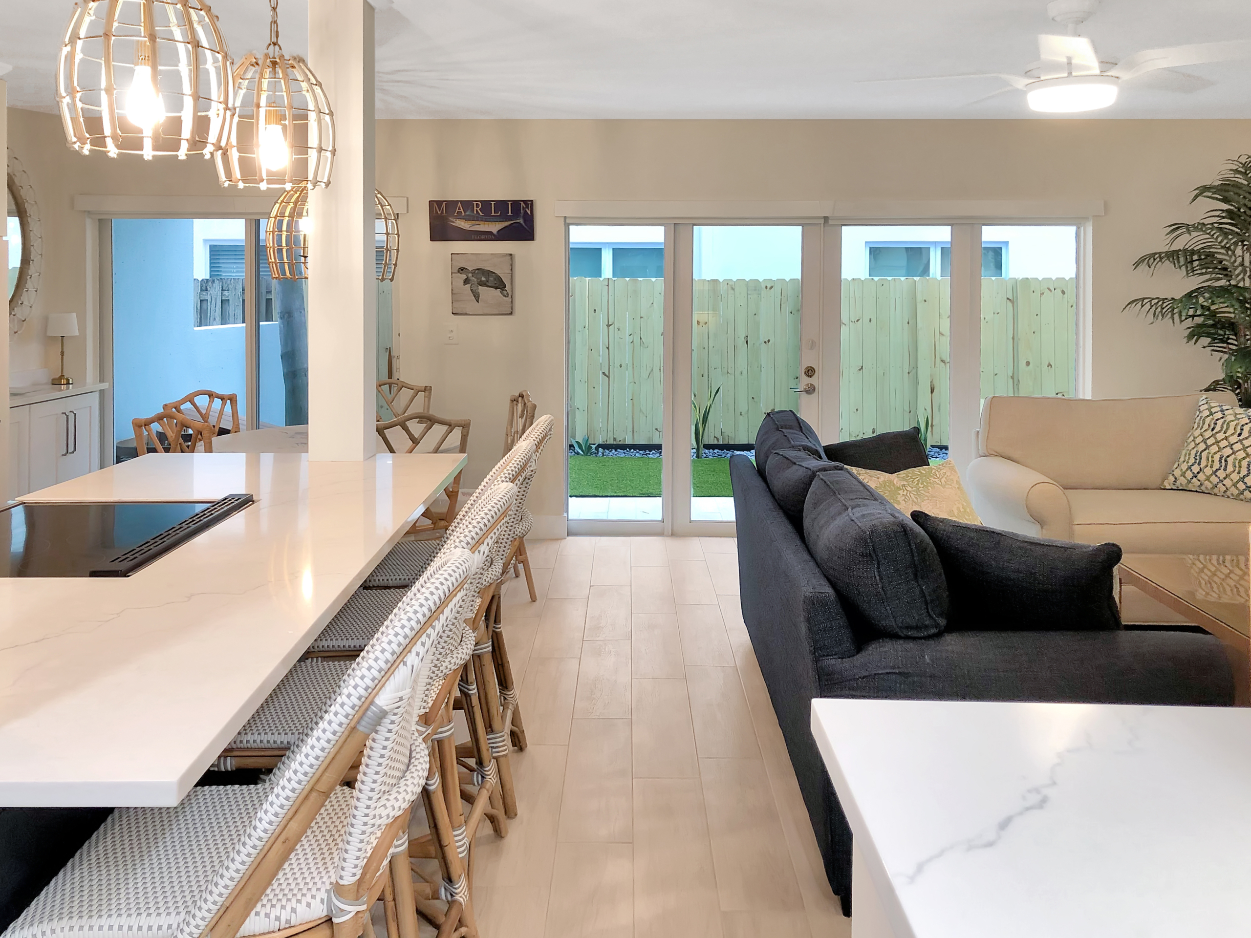 First floor, newly renovated 2 bedroom, 2 bath condo a block from the beach in Lauderdale-by-the-Sea. 2.5 blocks to waterfront restaurants and shops. 2.5 blocks to Sea Ranch Lakes Shopping Center. Open concept floor pattern and new modern finishes. In-unit laundry. Impact windows. Two off-street parking spots. Small pet allowed.