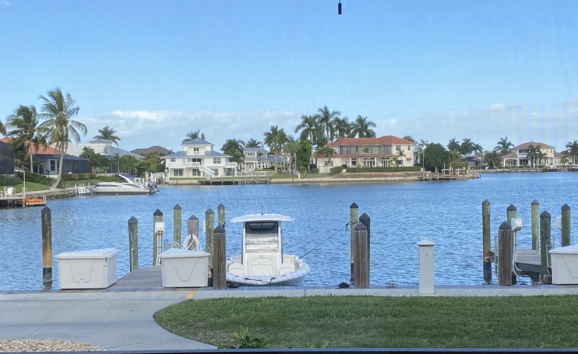 South Seas Club Wide Water Views. 2 bedroom 2 bath Condo. Never been rented. Boat Slip outside you lanai door. 10 minutes to Collier Bay. New Roof 2020. New Impact Doors/ Windows/ Sliders 2022. New AC 2020, New Washer/ Dryer 2020. Furnished. Close by Carport deeded. 10 minute walk to famous Crescent and Tiger Tail Beach