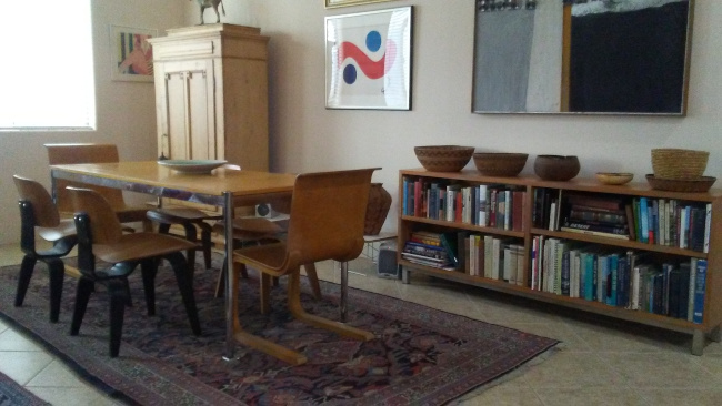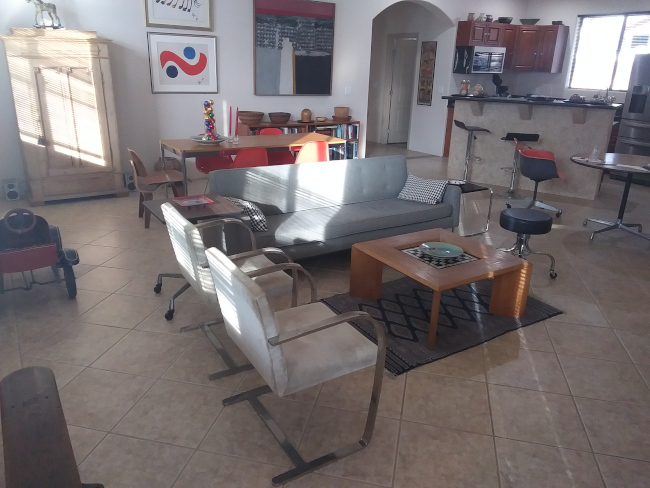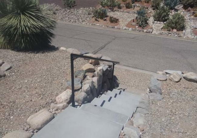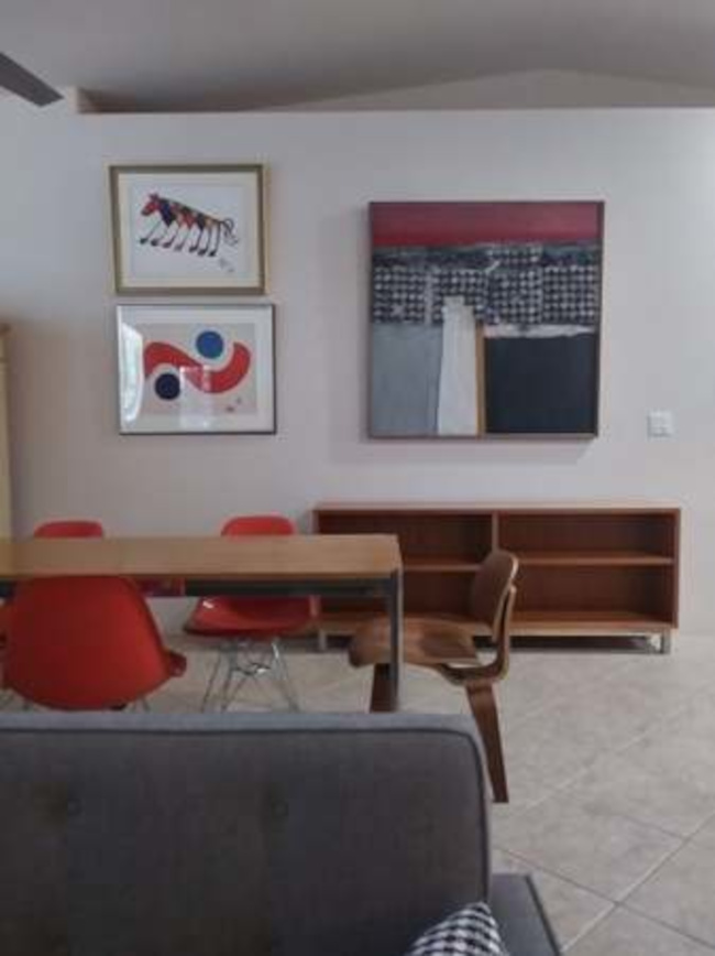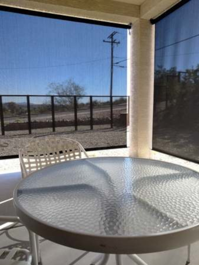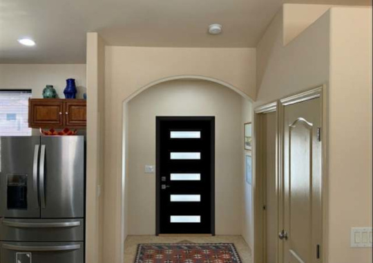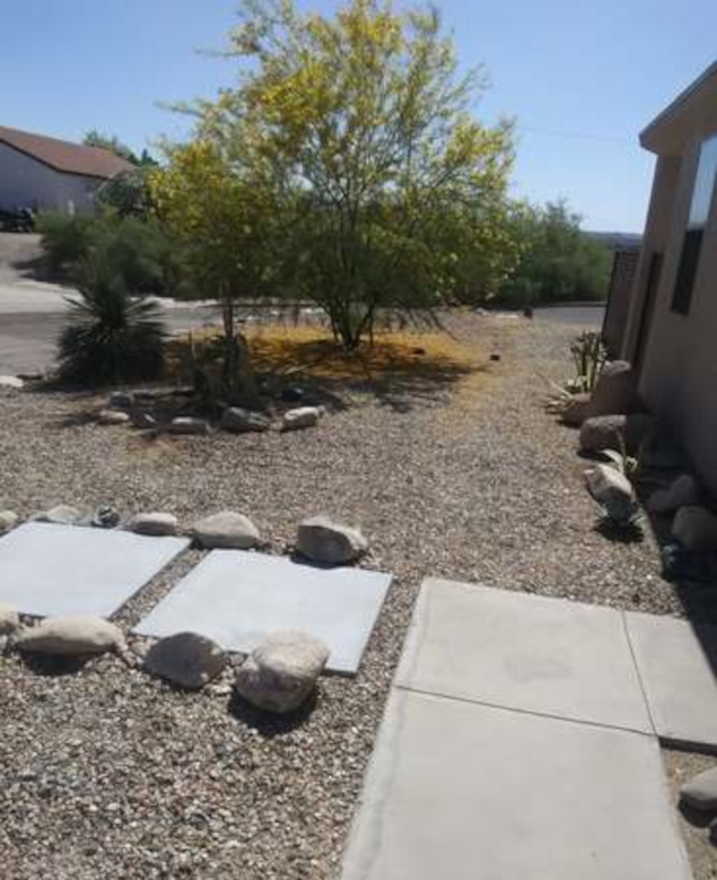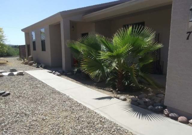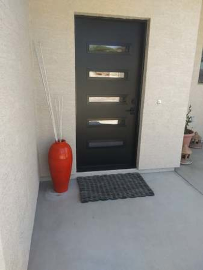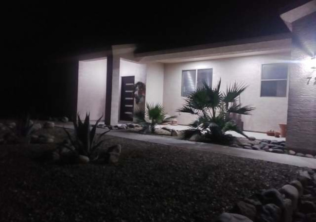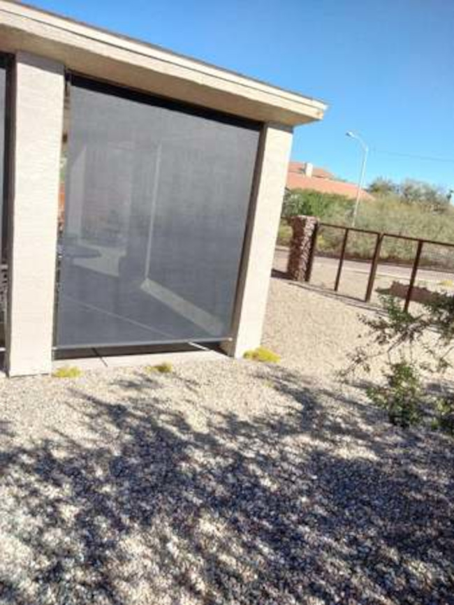 The home consists of three bedrooms and two full baths. The great room includes a kitchen with stainless appliances, a socializing bar-height counter and a walk-in pantry. The large windows are covered with black mini-blinds and there is a custom black metal door. The two-car garage has direct entry to the house. There is an inside laundry room with a washer/dryer. The house is fenced with a custom Corten metal fence. The home sits on a corner lot with some views to the mountains to the east. Broker compensation. Easy commute to TSMC.