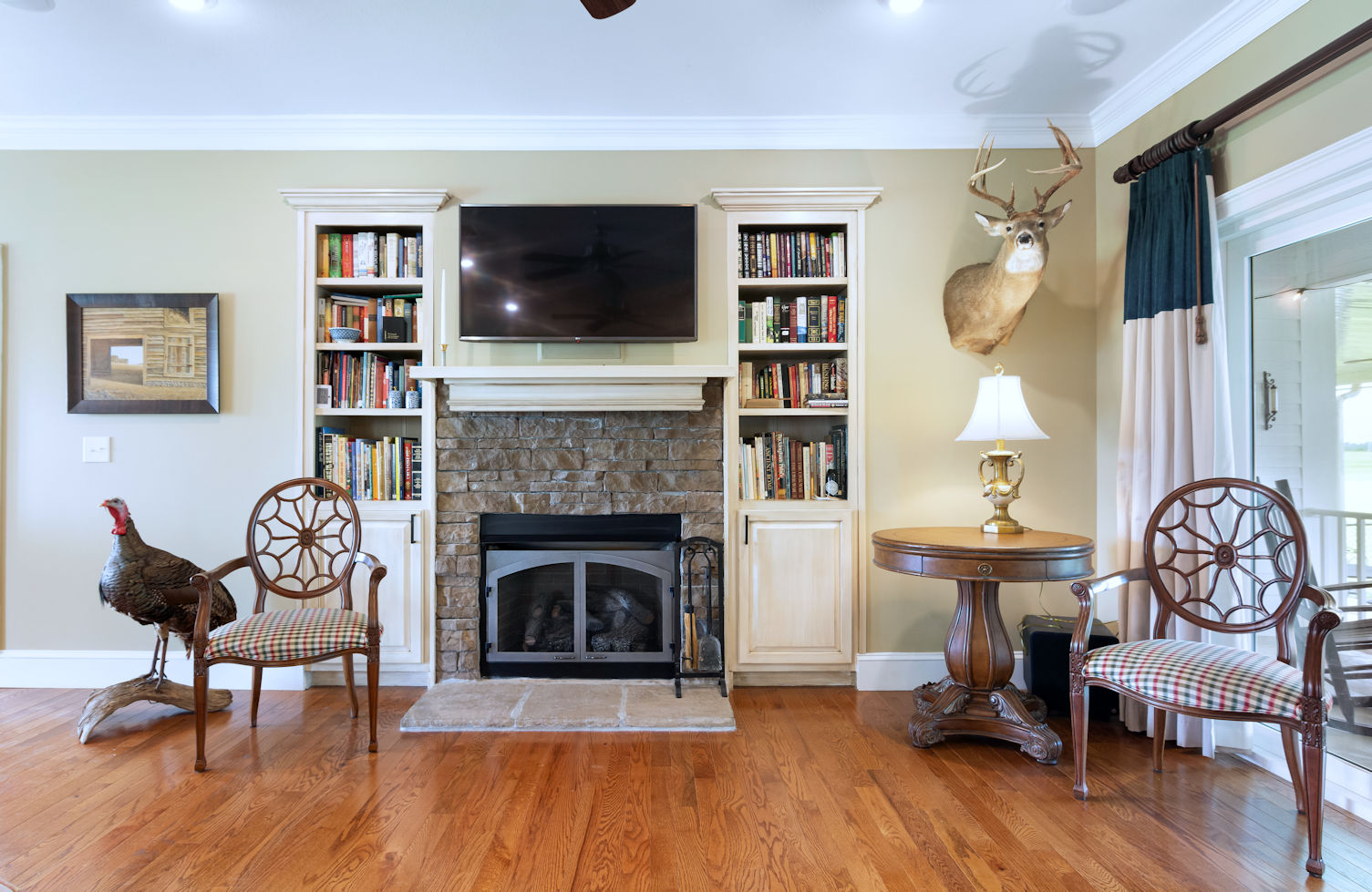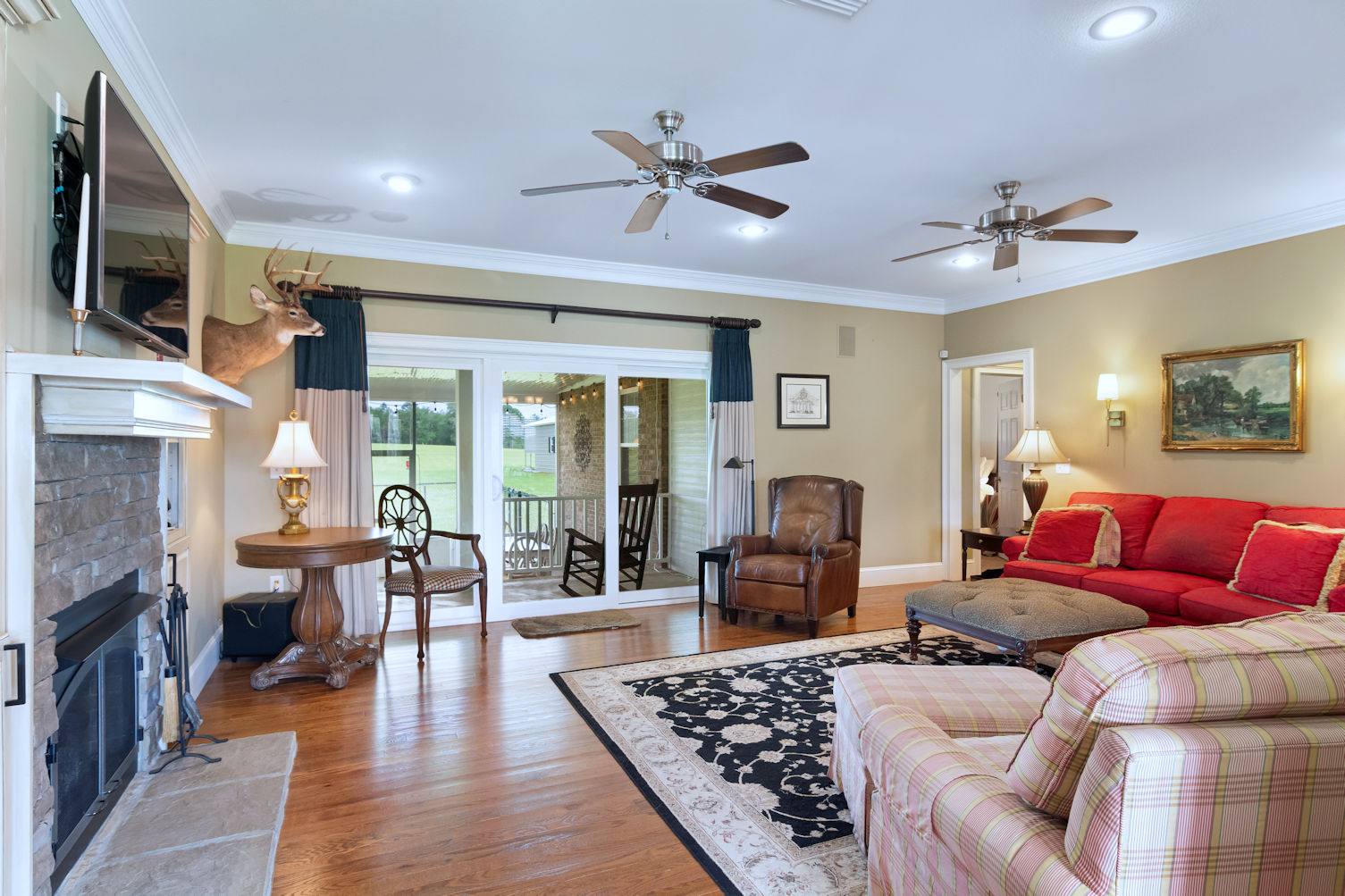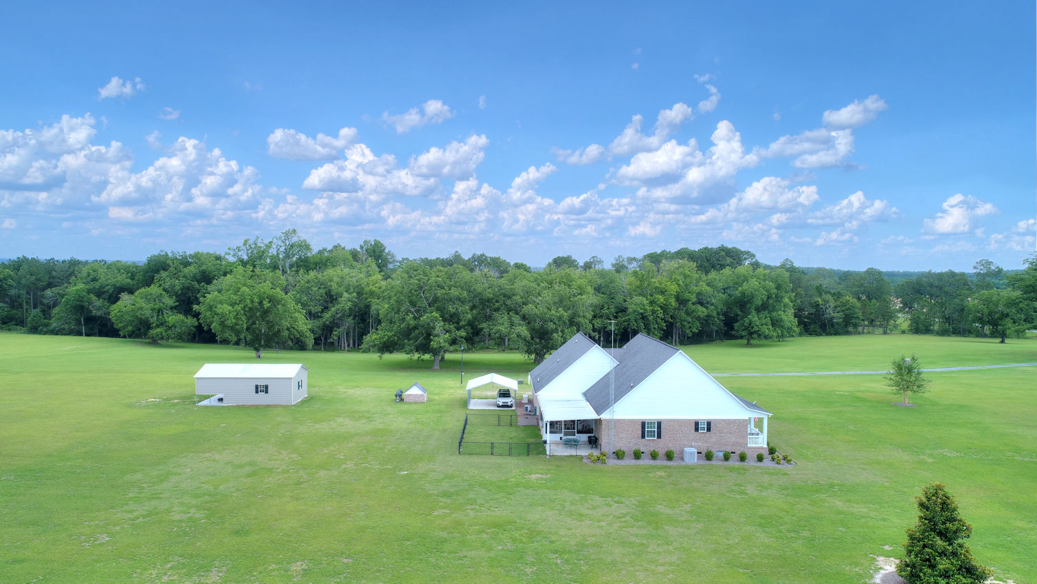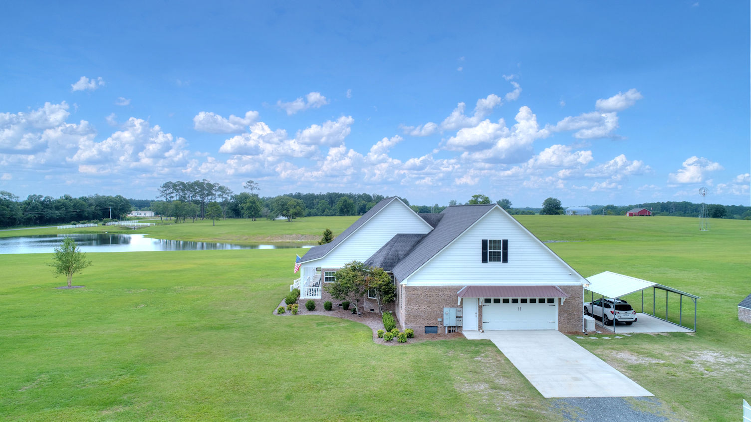 A beautifully appointed kitchen features custom cabinetry, granite countertops, double ovens and a central island.� The primary bedroom is a tranquil retreat, complete with an ensuite bathroom. Additionally, the farmhouse includes three more well-appointed bedrooms and two additional bathrooms.