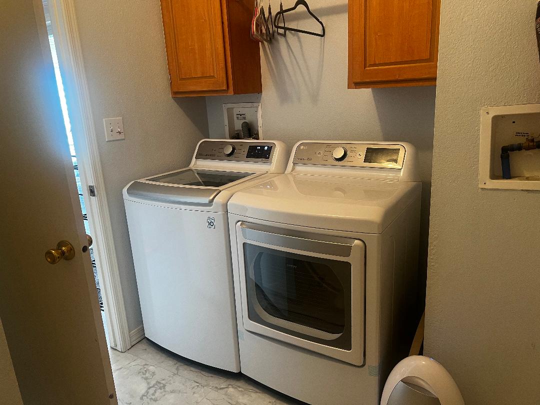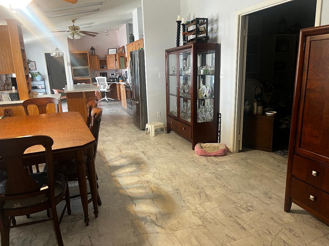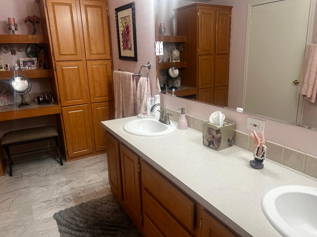 55 Community, HOA is less than $450/year, and YOU OWN YOUR OWN LAND! Beautiful home with luxury vinyl tile throughout, appliances: refrigerator, range/oven, vent fan/light, dishwasher, washer, dryer, Kitchen sink, disposal all upgraded 4 years ago. New water heater 3 years ago. Kitchen island is 7′ long. 3 bedroom, 2 bath split. Both baths are 3/4. Primary bedroom