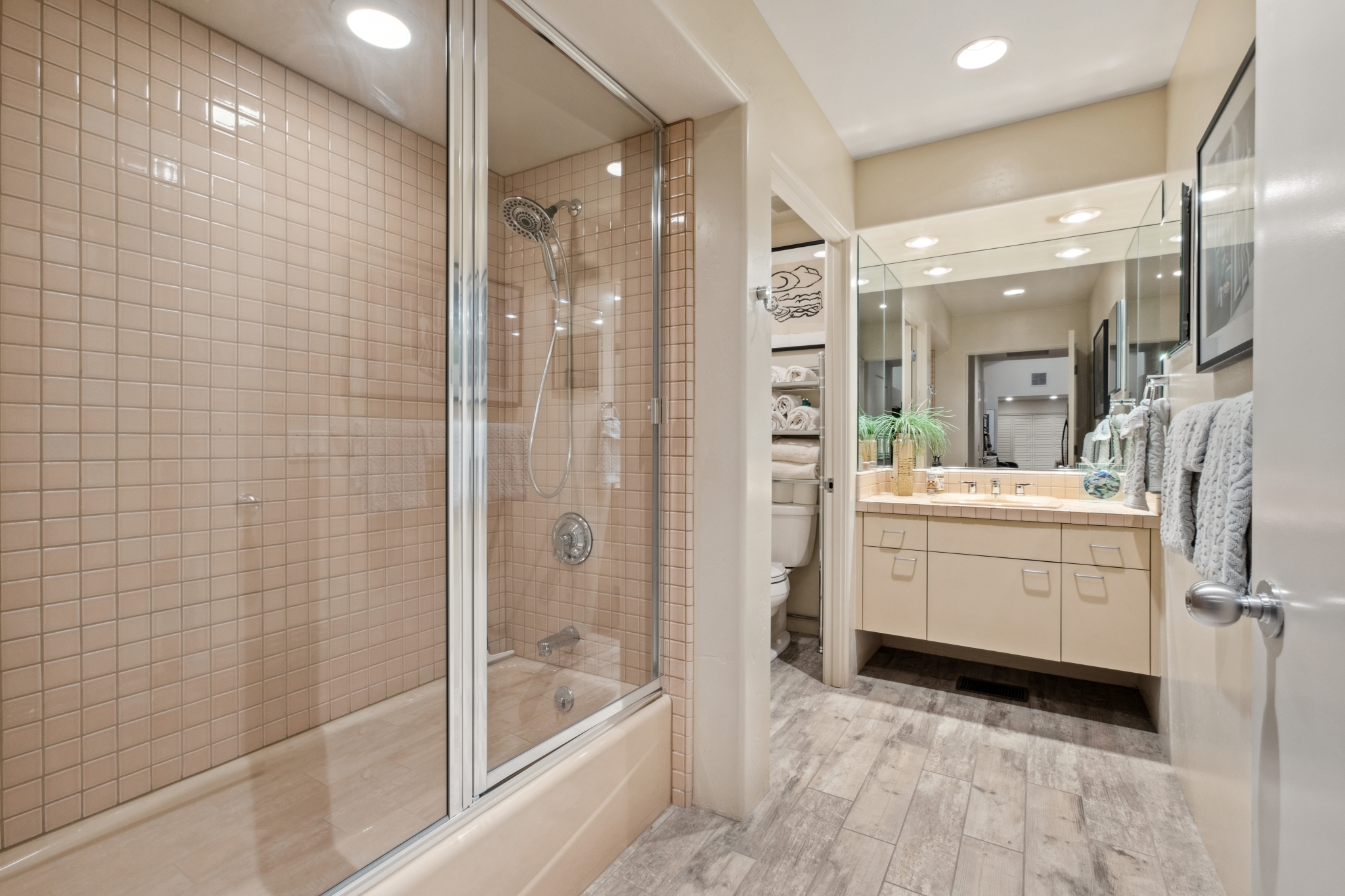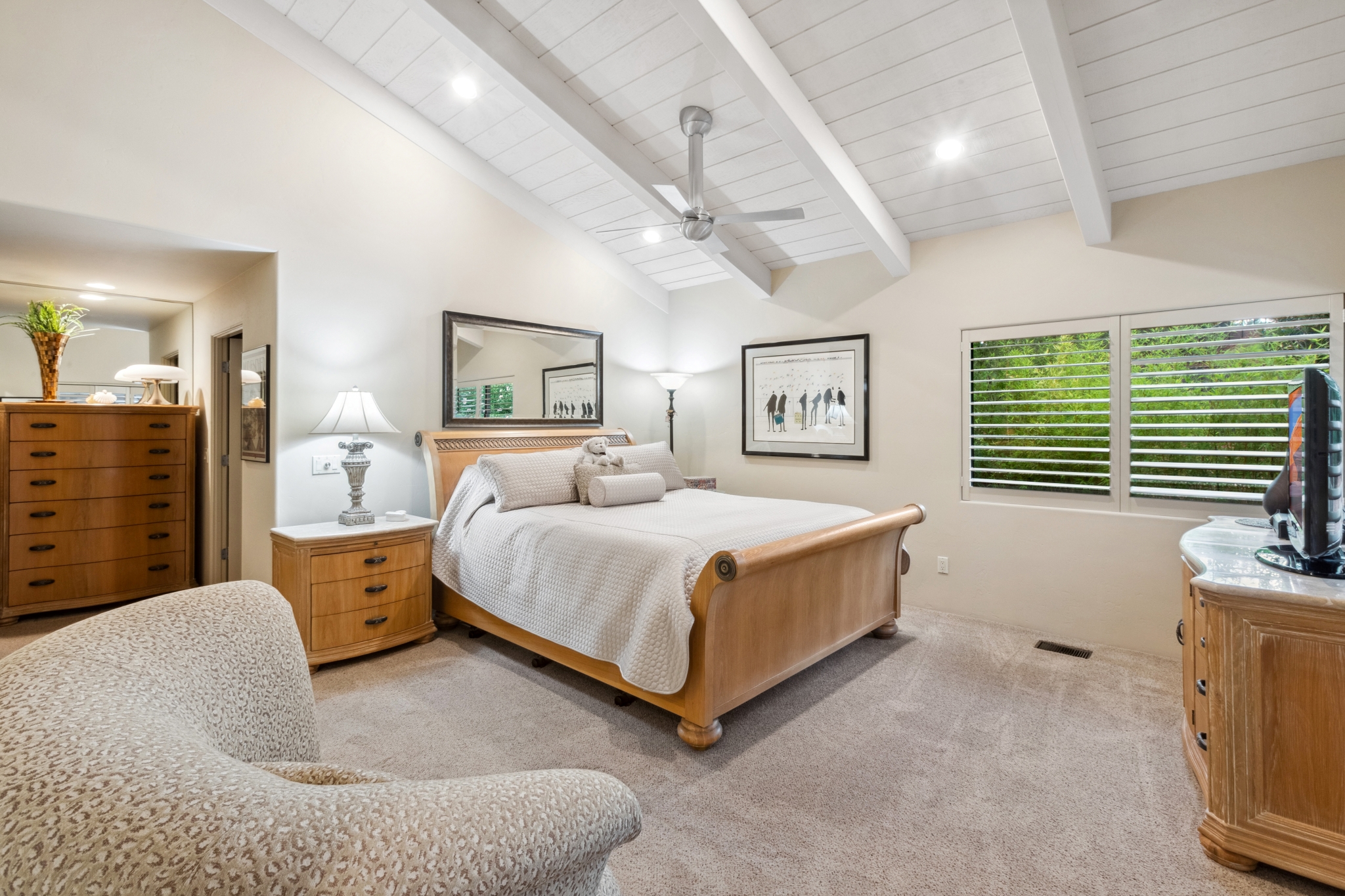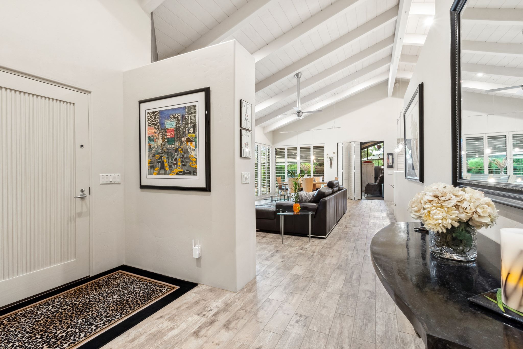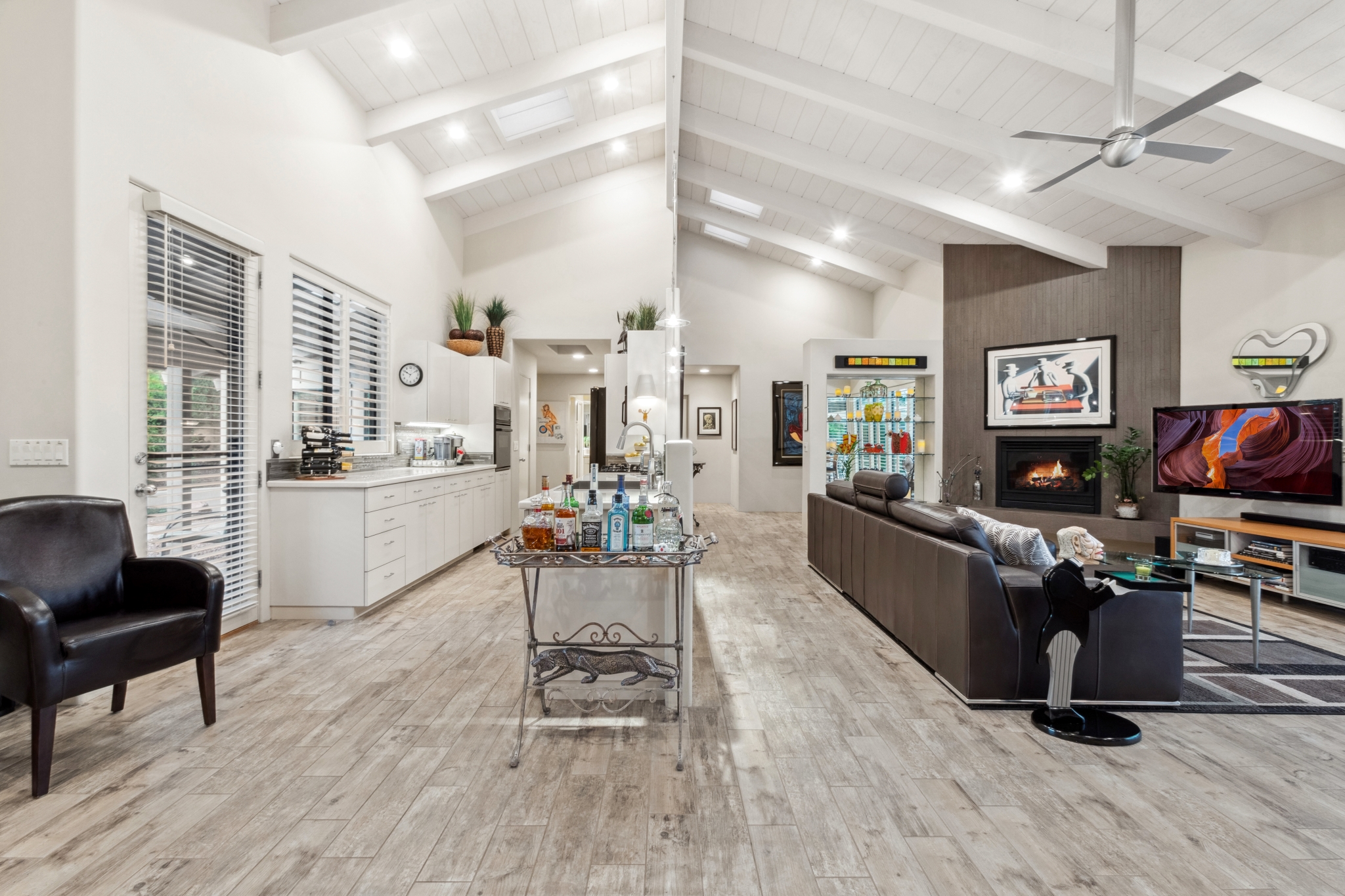 Hidden Utopia in Uptown! Highly desirable location, short walking distance to Shops, Restaurants and Hiking trails. Contemporary single level home with lush landscaping, private setting and totally fenced in. Immaculate home, floor plan splits into 2 bedrooms and 2 bathrooms which flanks the living area with a streamlined kitchen and dining room. Open concept design with vaulted ceilings and skylights, bright, airy and serene. Plantation shutters throughout to enjoy nature’s beauty surrounding the home. The great room has exceptional eastern views towards the Red Rocks and a private pool nestled among the Oasis. Beautiful sunset views from the living room, screened in Arizona room or while taking a dip in the swimming pool. Finished oversized 2 car garage with workbench, cabinets and storage. No HOAs and new roof. Relax and immerse yourself in this calming paradise.